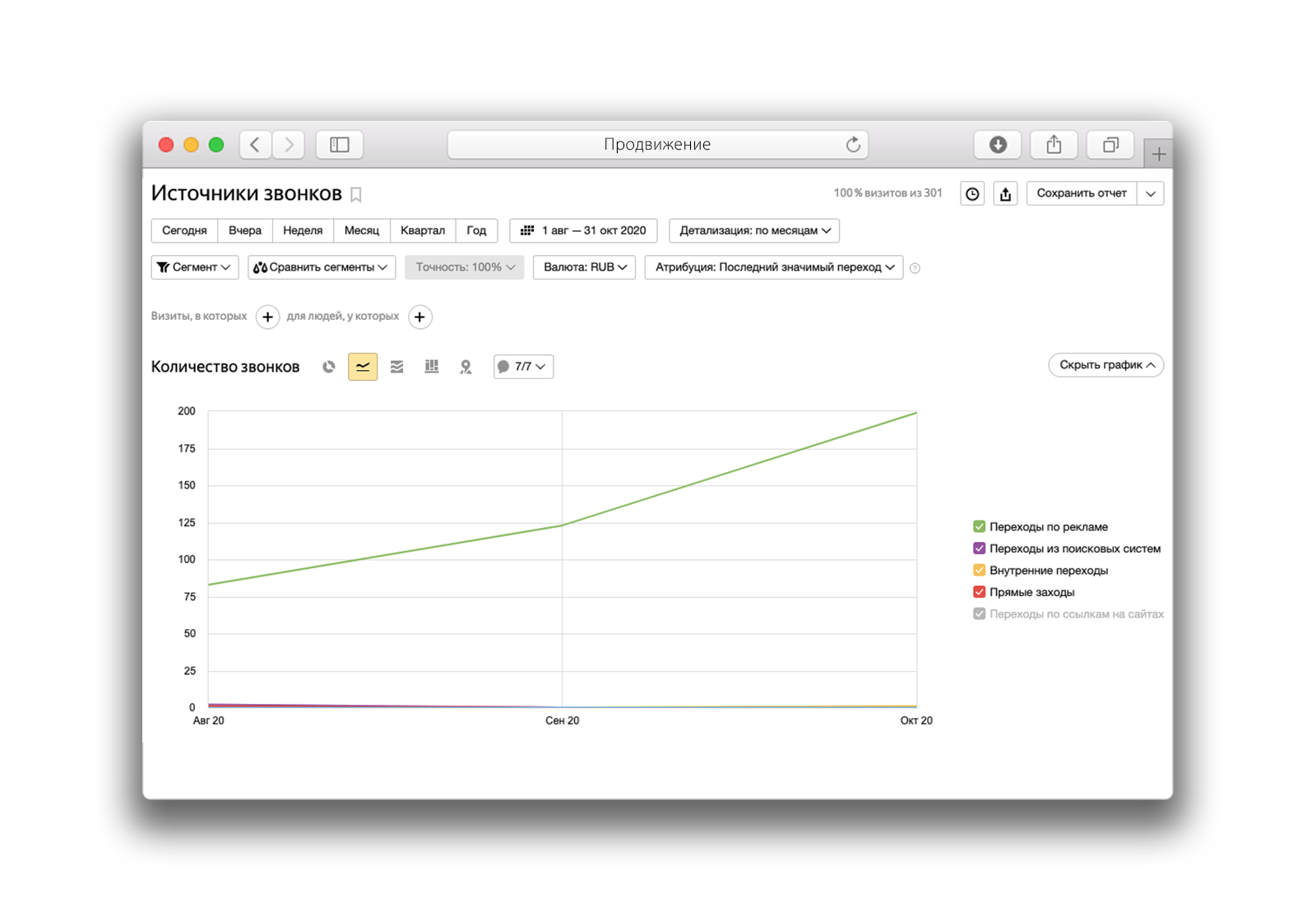 В октябре, в период спада сезонности, удалось привлечь на сайт на 71% больше целевых посетителей, чем в августе.