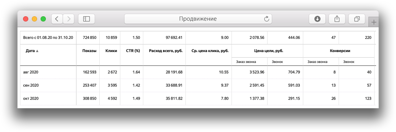 Уже в сентябре получили значительный результат: стоимость звонка сократилась на 16%, а количество звонков и заявок на звонок увеличилось в 1,5 раза.
