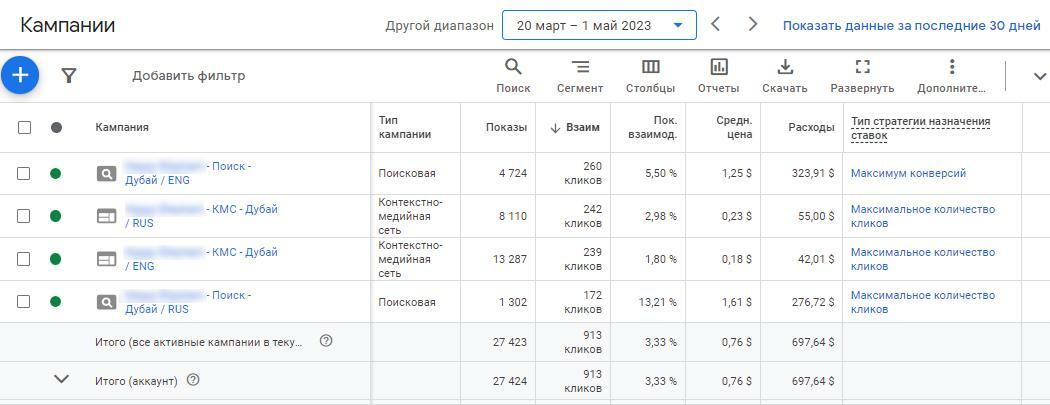 Статистика кампаний в Google Ads:
