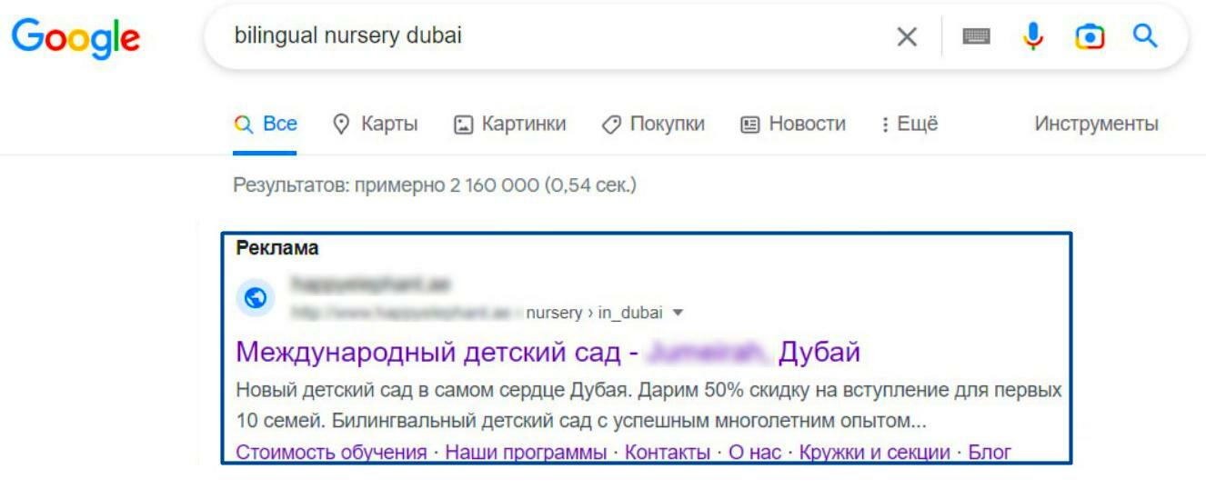 пример объявления в поисковой выдаче Google