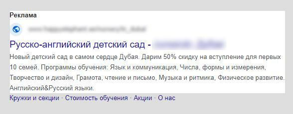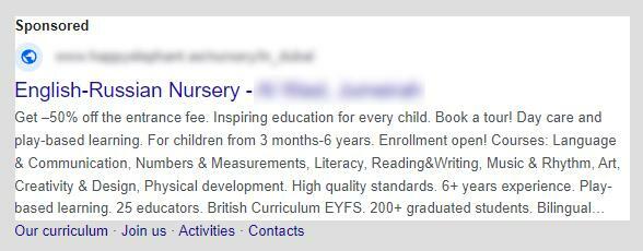 - Отразили в объявлениях основной оффер с сайта - "50% скидка на вступление в детский сад"